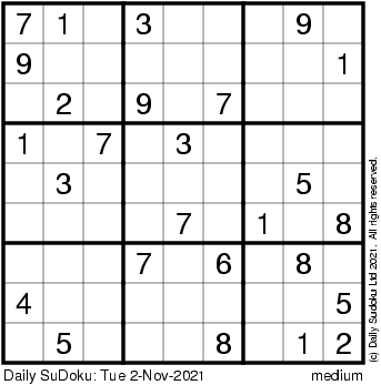 The Daily SuDoku: Tue 2-Nov-2021