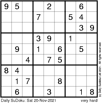 The Daily SuDoku: Sat 20-Nov-2021