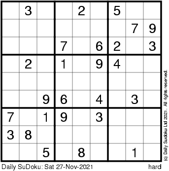 The Daily SuDoku: Sat 27-Nov-2021