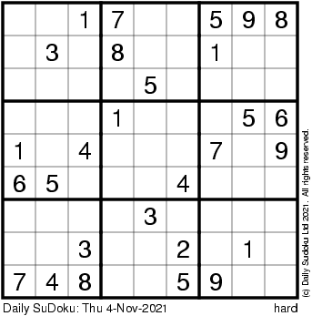 The Daily SuDoku: Thu 4-Nov-2021