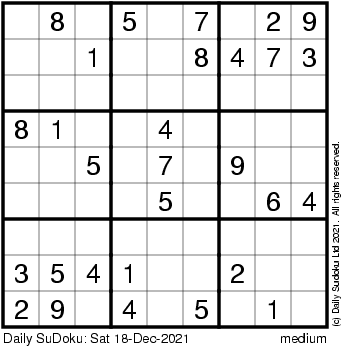 The Daily SuDoku: Sat 18-Dec-2021