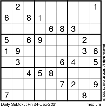 The Daily SuDoku: Fri 24-Dec-2021