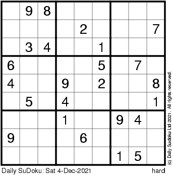 The Daily SuDoku: Sat 4-Dec-2021