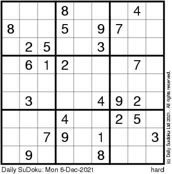 The Daily SuDoku: Mon 6-Dec-2021