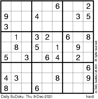 The Daily SuDoku: Thu 9-Dec-2021