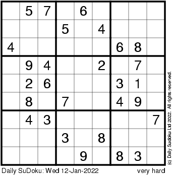 The Daily SuDoku: Wed 12-Jan-2022