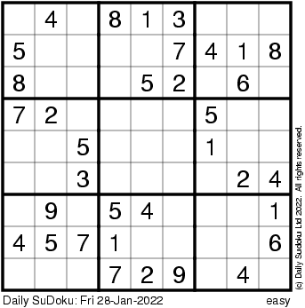 The Daily SuDoku: Fri 28-Jan-2022