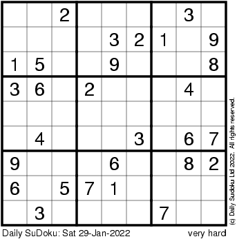 The Daily SuDoku: Sat 29-Jan-2022
