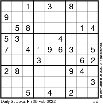 The Daily SuDoku: Fri 25-Feb-2022