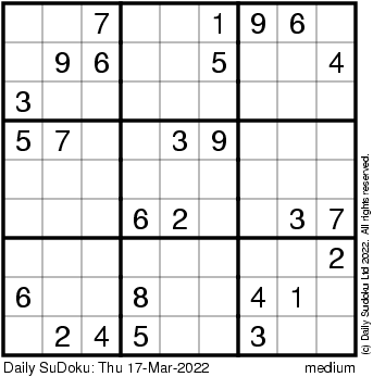 The Daily SuDoku: Thu 17-Mar-2022