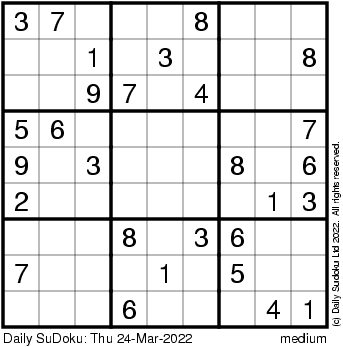 The Daily SuDoku: Thu 24-Mar-2022
