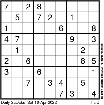 The Daily SuDoku: Sat 16-Apr-2022