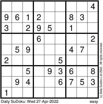The Daily SuDoku: Wed 27-Apr-2022