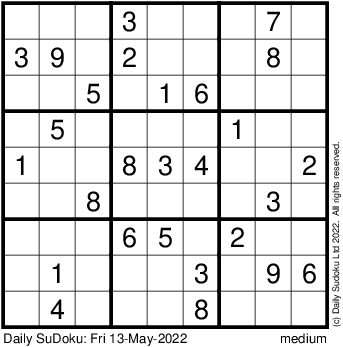 The Daily SuDoku: Fri 13-May-2022