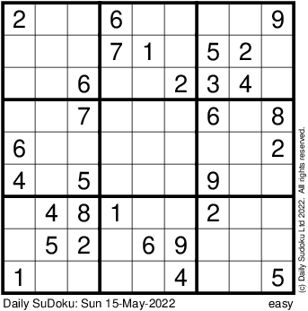 The Daily SuDoku: Sun 15-May-2022