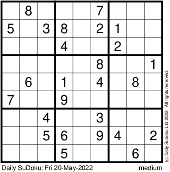 The Daily SuDoku: Fri 20-May-2022