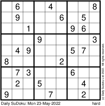 The Daily SuDoku: Mon 23-May-2022