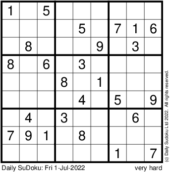 The Daily SuDoku: Fri 1-Jul-2022