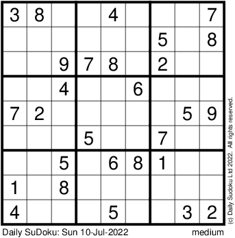The Daily SuDoku: Sun 10-Jul-2022