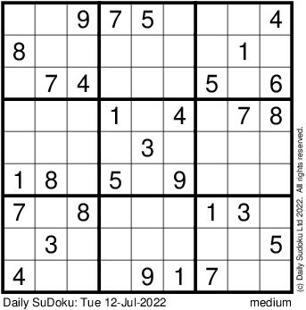 The Daily SuDoku: Tue 12-Jul-2022