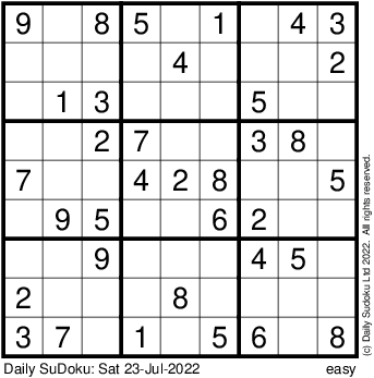 The Daily SuDoku: Sat 23-Jul-2022