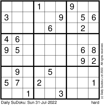 The Daily SuDoku: Sun 31-Jul-2022