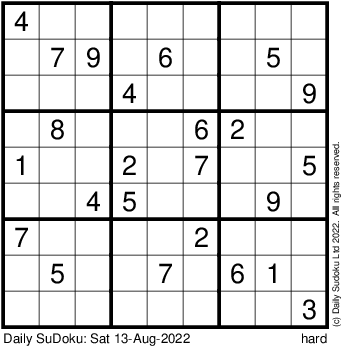 The Daily SuDoku: Sat 13-Aug-2022