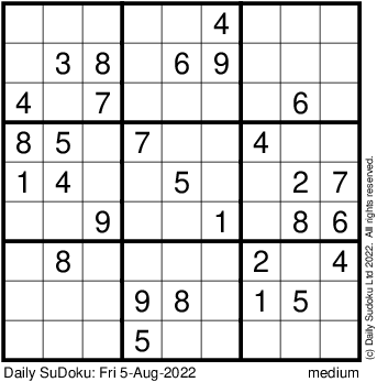 The Daily SuDoku: Fri 5-Aug-2022