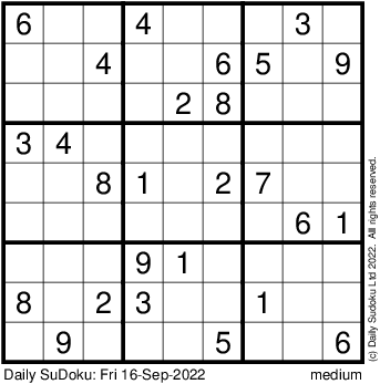 The Daily SuDoku: Fri 16-Sep-2022
