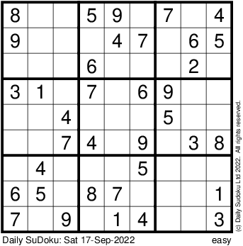 The Daily SuDoku: Sat 17-Sep-2022