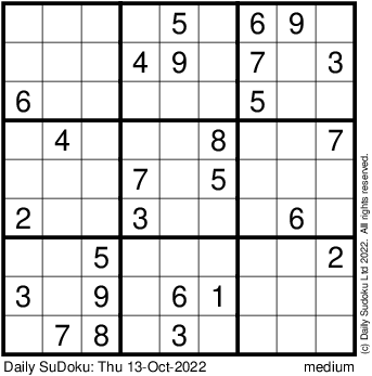 The Daily SuDoku: Thu 13-Oct-2022