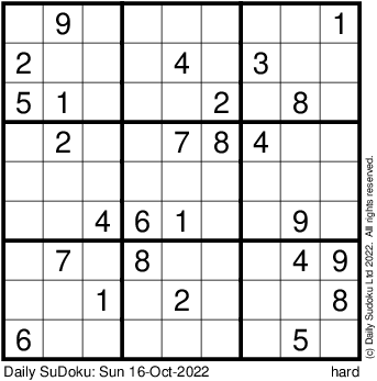The Daily SuDoku: Sun 16-Oct-2022