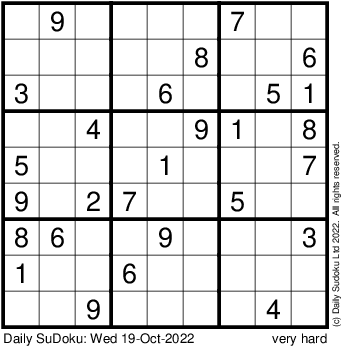The Daily SuDoku: Wed 19-Oct-2022