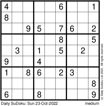 The Daily SuDoku: Sun 23-Oct-2022