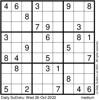 The Daily SuDoku: Wed 26-Oct-2022