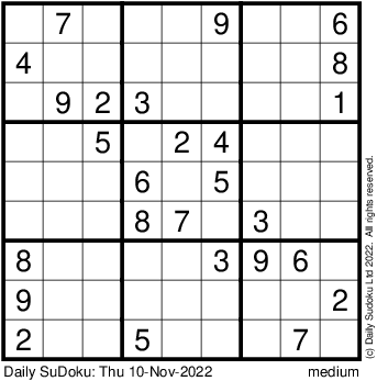 The Daily SuDoku: Thu 10-Nov-2022
