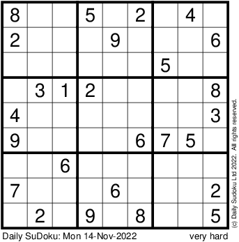The Daily SuDoku: Mon 14-Nov-2022