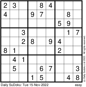 The Daily SuDoku: Tue 15-Nov-2022