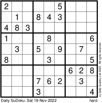 The Daily SuDoku: Sat 19-Nov-2022