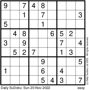 The Daily SuDoku: Sun 20-Nov-2022
