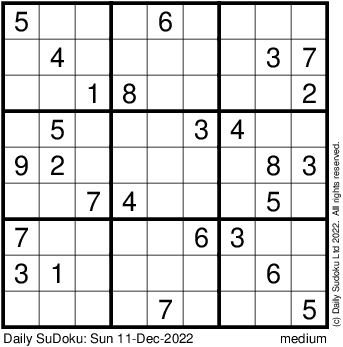 The Daily SuDoku: Sun 11-Dec-2022