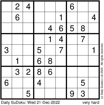The Daily SuDoku: Wed 21-Dec-2022