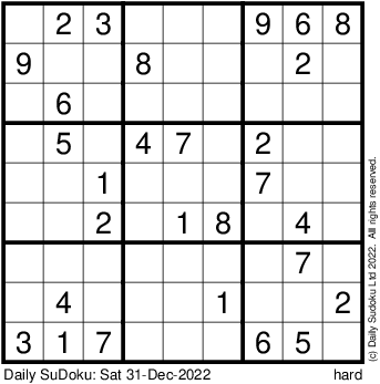 The Daily SuDoku: Sat 31-Dec-2022