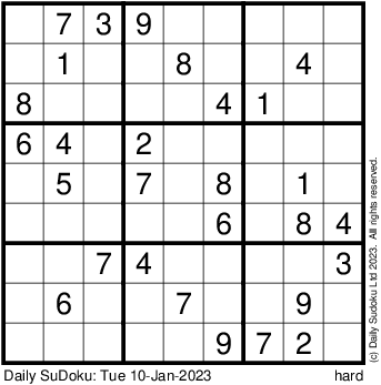 The Daily SuDoku: Tue 10-Jan-2023