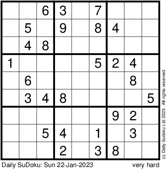 The Daily SuDoku: Sun 22-Jan-2023