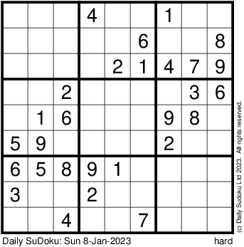The Daily SuDoku: Sun 8-Jan-2023