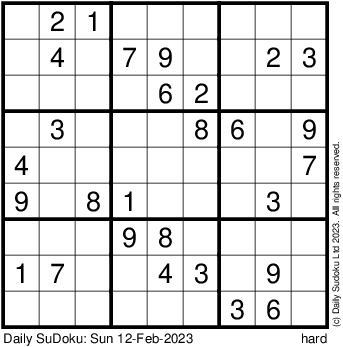 The Daily SuDoku: Sun 12-Feb-2023