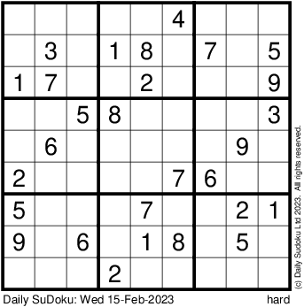 The Daily SuDoku: Wed 15-Feb-2023