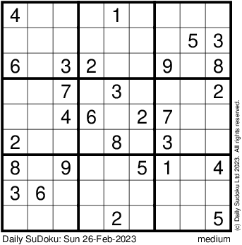 The Daily SuDoku: Sun 26-Feb-2023