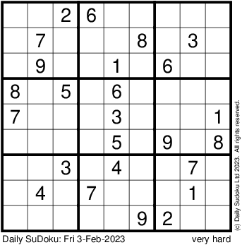 The Daily SuDoku: Fri 3-Feb-2023